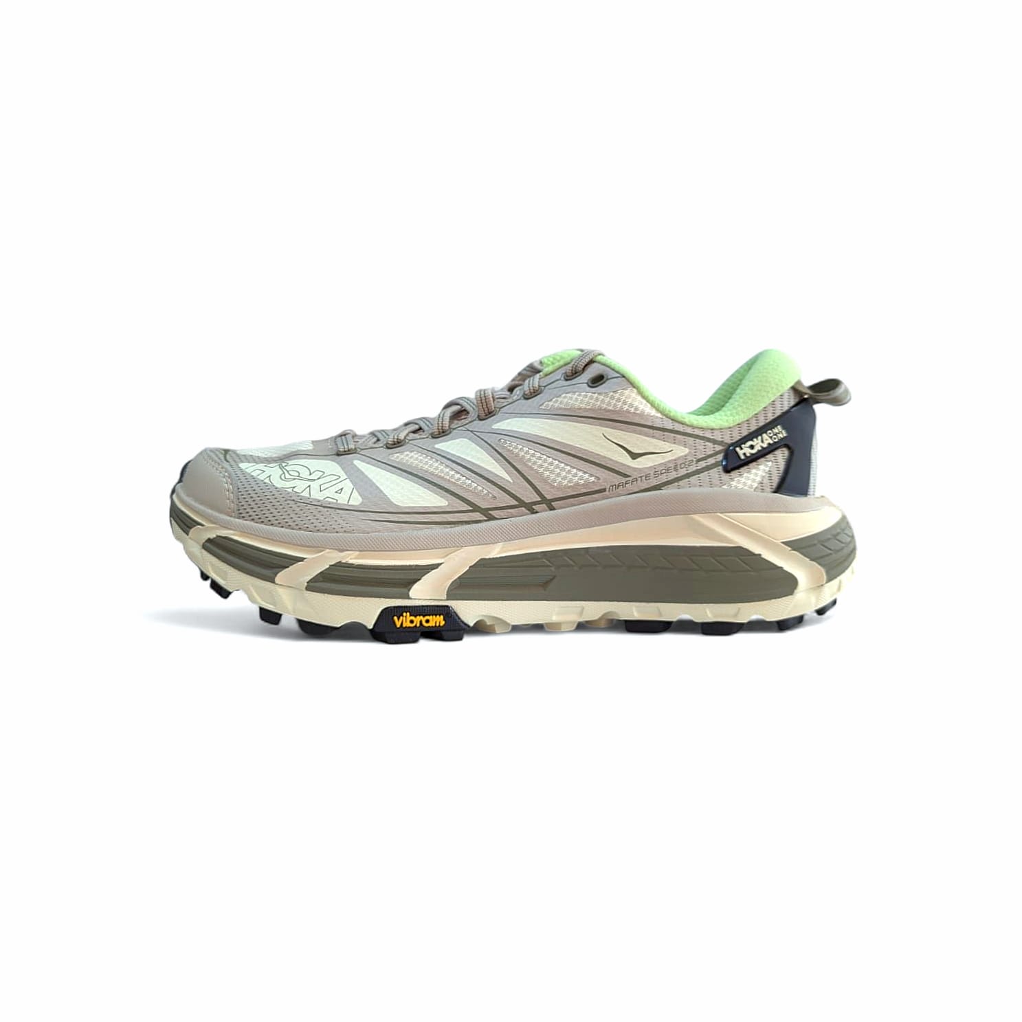 Unisex Trailrunningschuhe Hoka U Mafate Speed 2Obermaterial : Textil. SynthetikInnenmaterial : TextilWeite : NormalHerkunftsland : VietnamFarbe : putty / eucalyptusGröße 40. 6,5 Uk. 25 cm FußlängeGröße 41,1/3. 7,5 Uk. 26 cm FußlängeGröße 43,1/3. 9 Uk. 27,5 cm FußlängeGröße 45,1/3. 10,5 Uk. 29 cm Fußlänge